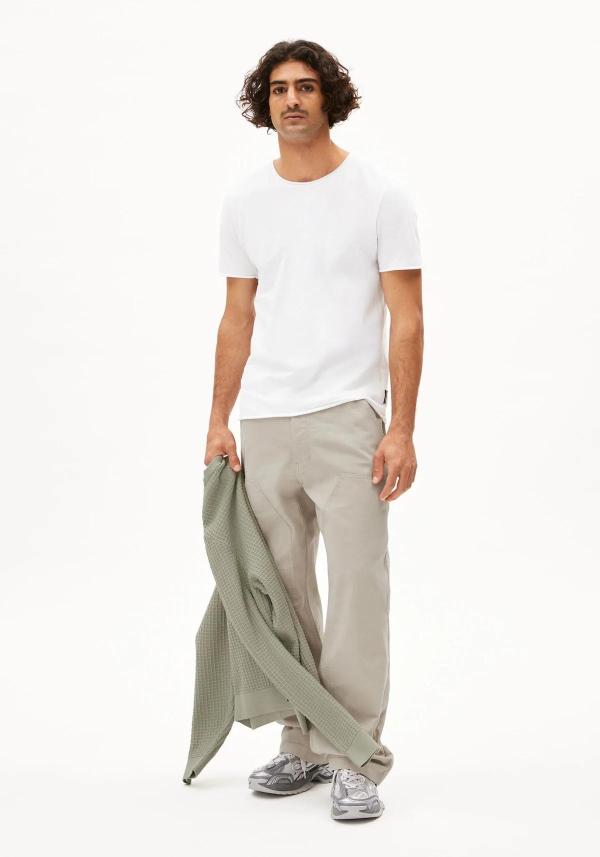 Het Jaames Brushed T-shirt van Armedangels is een super fijne basic gemaakt van GOTS/vegan katoen. Een duurzaam, goed ademend, materiaal wat stevig en zacht is. Het T-shirt heeft korte mouwen, een ronde hals en is met zijn witte kleur overal gemakkelijk mee te combineren. Dit T-shirt staat prachtig op een paar chino’s van KnowledgeCotton Apparel.