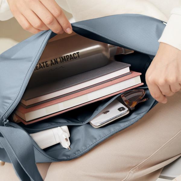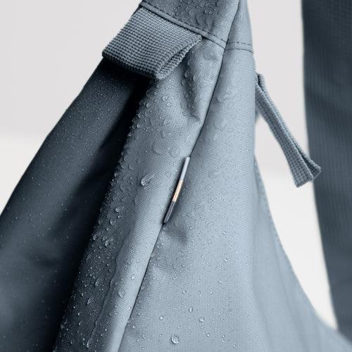 Materiaal: de hoofdstof gemaakt van gerecycled Ocean Impact Plastic (RE:PET), voering gerecycled PET, gespen van polyoxymethylene, banden van gerecyclede PET, rits van gerecyclede nylon. De binnenkant van de tas heeft een polyurethaan coating en de buitenkant heeft een DWR coating.