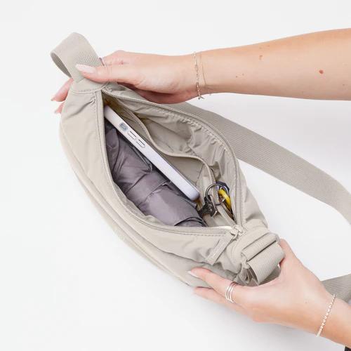 De Puffer Moon Bag Small van GOT BAG in het lichtbeige ‘Monochrome Scallop’ is een fijne cross-body bag. De tas is gewatteerd en onderscheidt zich daarmee van de Moon Bag Small van GOT Bag. De Puffer Moon Bag Small heeft een ruim binnenvak, met een steekvak en een ritssluiting. De tas is van voornamelijk gerecyclede visnetten gemaakt, is waterafstotend en kan dus prima tegen een licht buitje! Het is een chille alledaagse tas, voor als het allemaal net niet meer in je jaszakken past ;). Door de lichtbeige kleur is de tas ook nog eens makkelijk te combineren met je outfits, dus gooi je spullen erin en ook jij bent razendsnel de deur uit!
