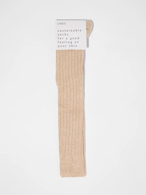 De Kniekousen van Lanius komen in de kleur ‘Beige Melange’. Het zijn erg zachte en comfortabele kniekousen gemaakt van biologisch katoen met een beetje elastaan. De kousen zijn geribd en staan leuk onder een rok, of simpelweg lekker warm onder een lange broek in de koude maanden.