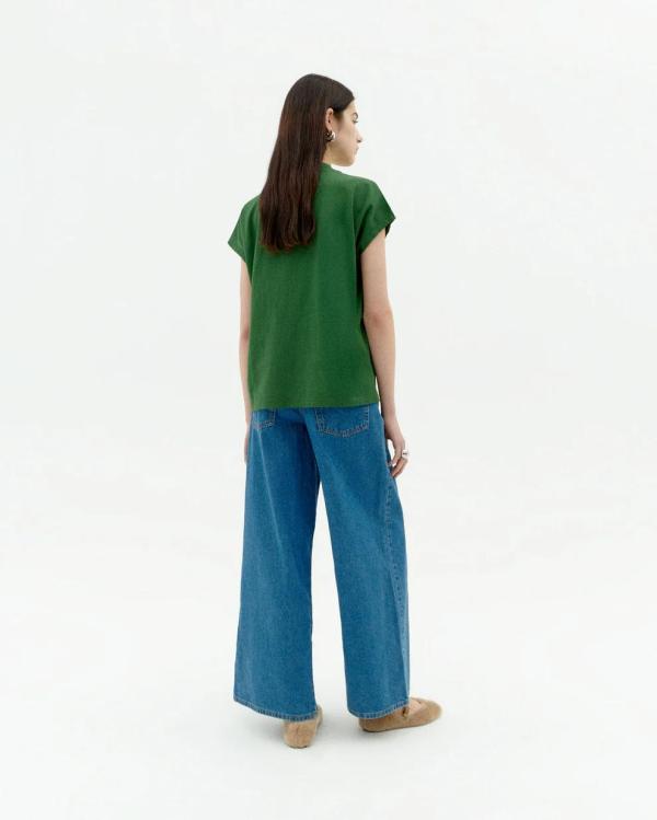 De Volta Tee van Thinking Mu is een elegant shirt in de groene kleur ‘Dill’. Het shirt heeft een ronde hals, korte aangeknipte mouwen en is van biologisch katoen gemaakt. Staat goed op een flared jeans zoals de Enijaa High Waist Wide Jeans van Armedangels of een wijde broek zoals een van de Sara High Loose van MUD Jeans. Hoe je ‘m ook combineert dit veelzijdige shirt is een mooie toevoeging aan je look!